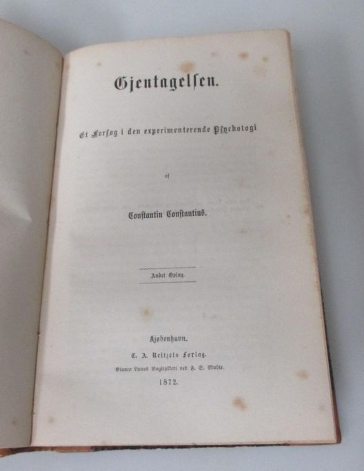 Bog med forskellige artikler, bl.a. Søren Kirkegaard "Tre taler ved tænkte lejligheder", udgivet København 1873, andet oplag. Med kvart læder bind.