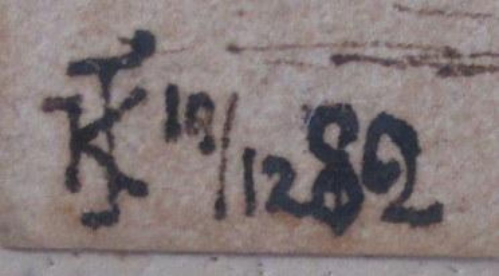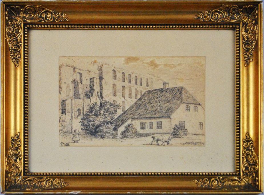 Jensen, Karl Georg (1851 - 1933) Danmark En lille pige ved Koldinghus. Tusch på papir. Signeret: Monogram KJ, 19. 12. 82. 18 x 12 cm.