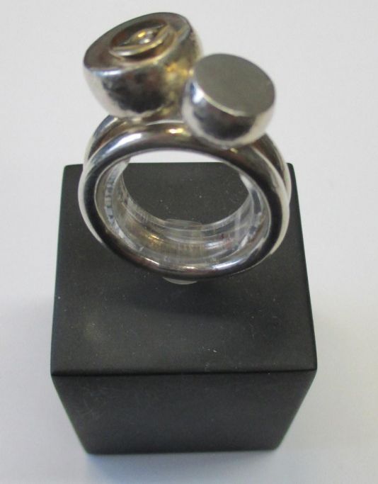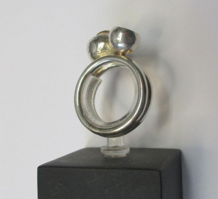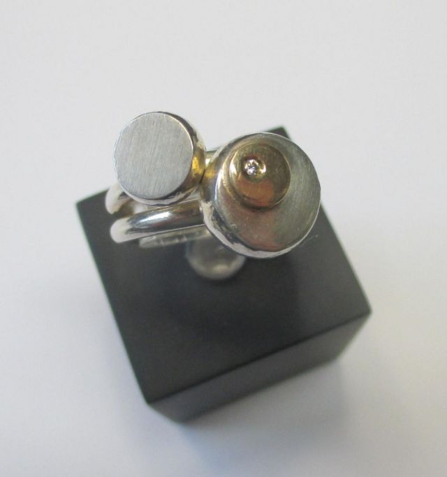 Sterling sølvring med guld/brillant, Fritz Heiring Sørensen (efter 1976), Randers, Danmark.