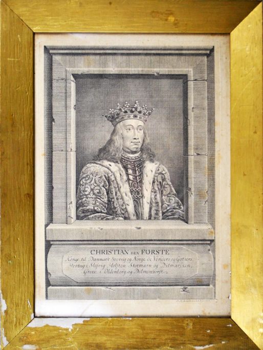 I 1755 bevilligedes kobberstikkeren at han måtte stikke de 12 oldenborgske konger. Han nåede kun dette stik, før han døde.