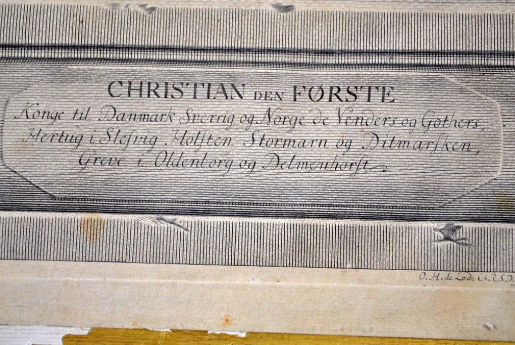 Lode, Odvardt Helmodt von de (1726 - 1757) Danmark: Portræt af Kong Christian 1 (1757). Kobberstik. Signeret. 32 x 22 cm.