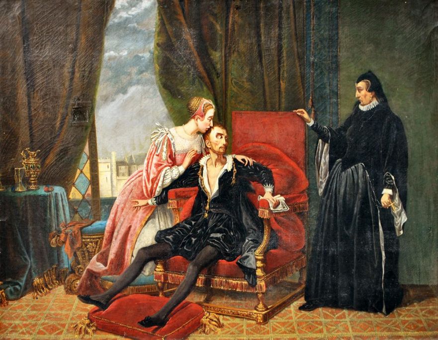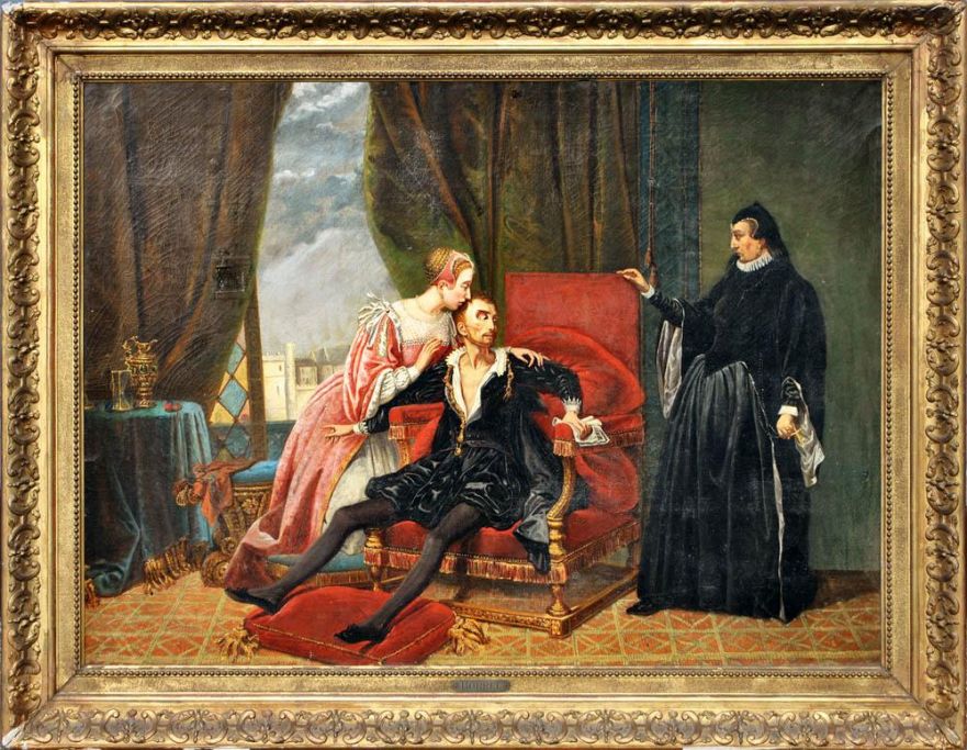 Borrel, Anna Rimbault (19. årh.) Historisk scene med tre personer.