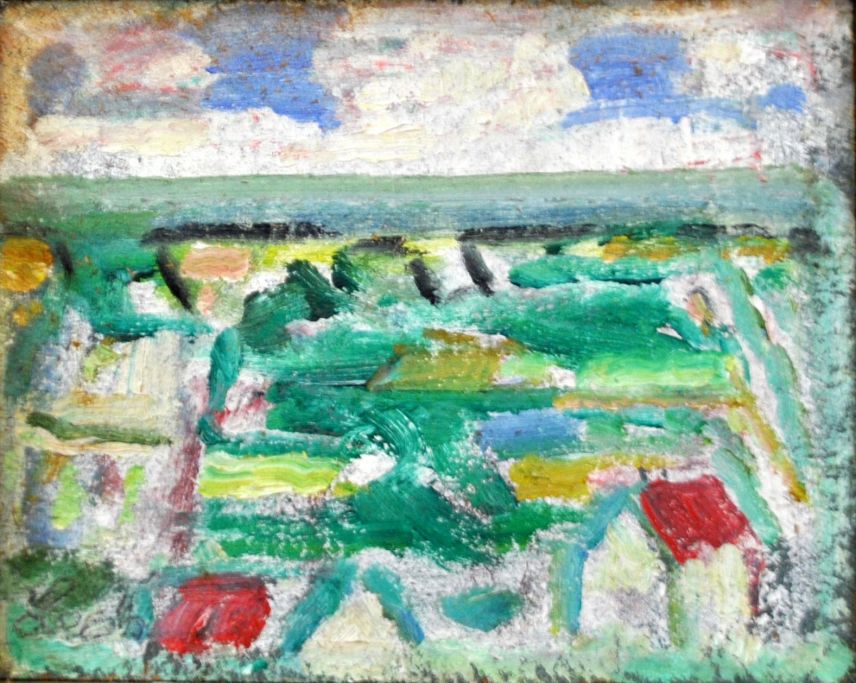 Thellefsen, Leo (1909 - 1997) Danmark: Skitse 1987. Olie på blød masonit. Signeret. 13 x 16,5 cm.