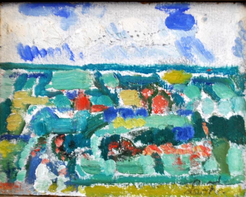 Thellefsen, Leo (1909 - 1997) Danmark: Mini portræt af Juli 1988. Olie på blød masonit. Signeret. 13 x 16,5 cm.