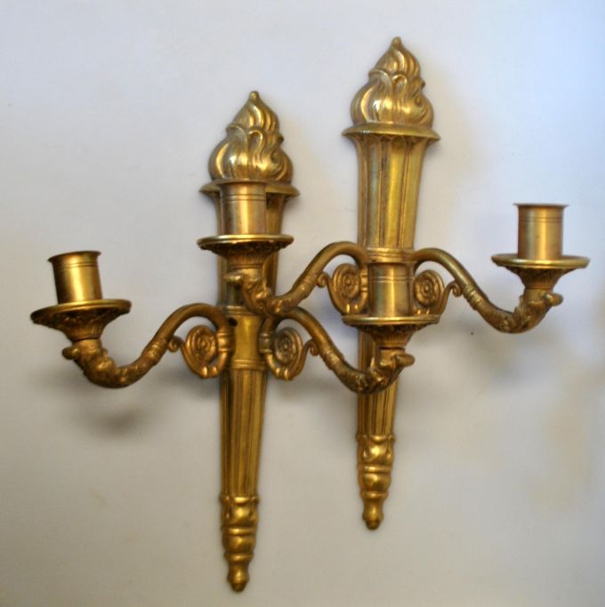 Et par franske bronze lampetter, 20. årh. Design i form af fakkel. Kan monteres til el. H: 36 cm. B.: 24 cm.