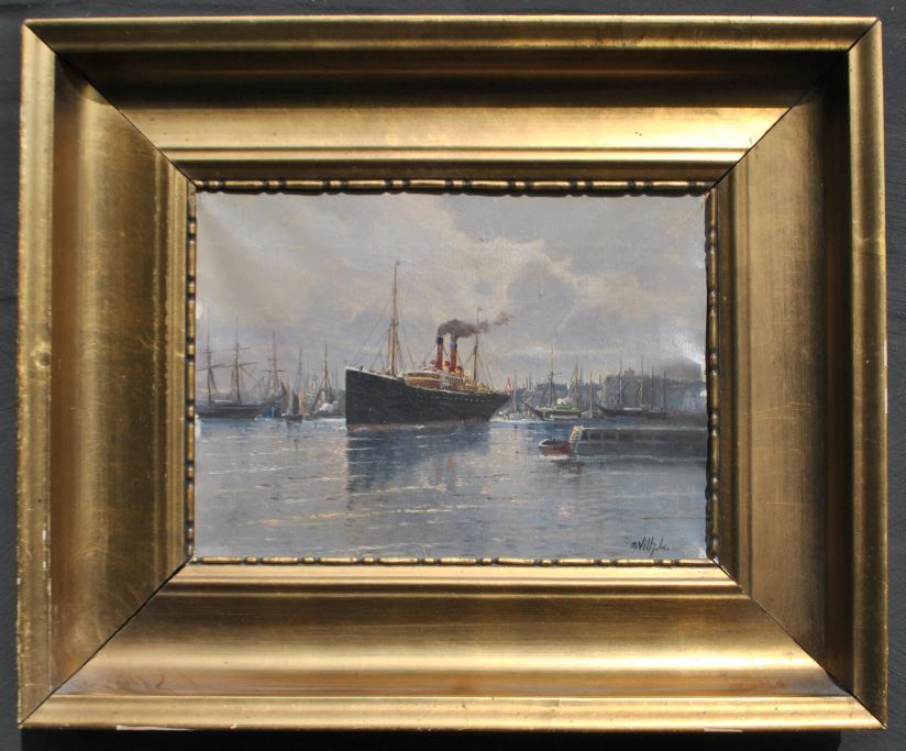Larsen, C. Vilhelm (1880 - 1950) Danmark: En damper i Københavns Havn.