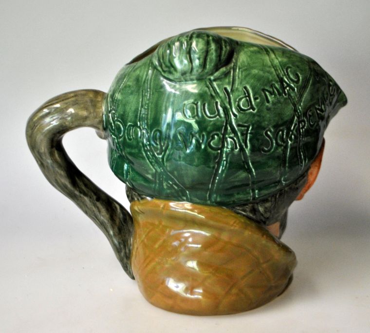 Royal Doulton karakter kande, Auld-Mac Bang went Saxpence, fajance, 20. årh. England. Polykrom dekoreret. Stemplet. H.: 16 cm.