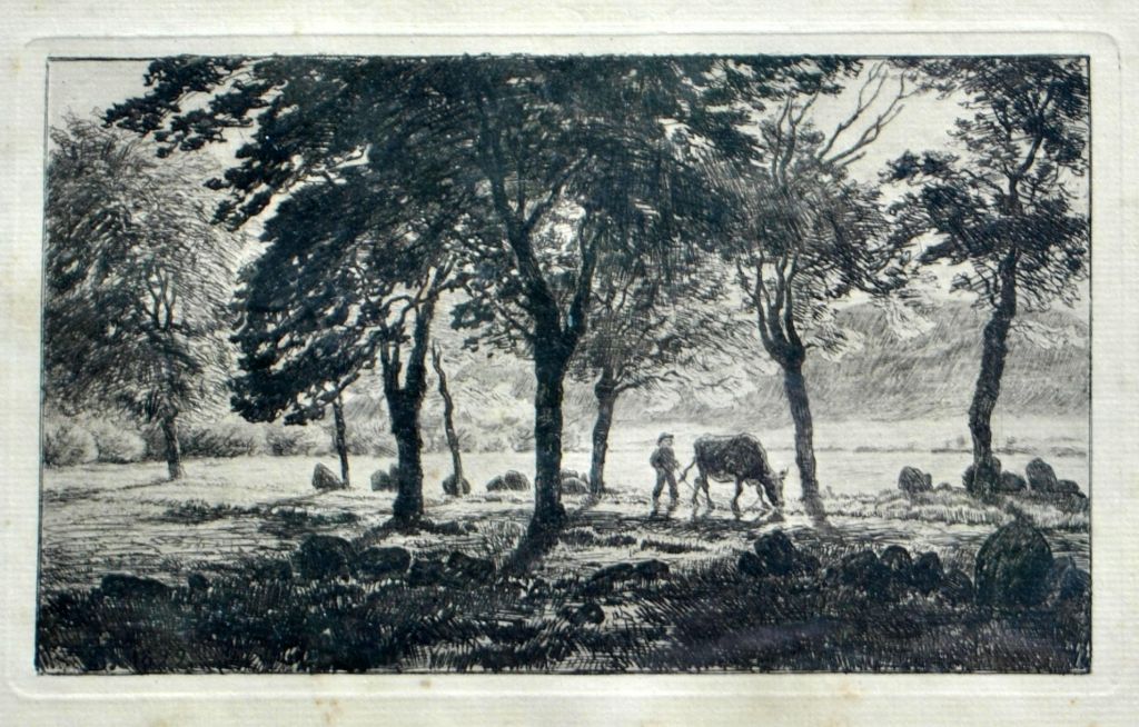 Skovgaard, Niels Christian (1858 - 1938) Danmark.En mand med en ko på vejen.