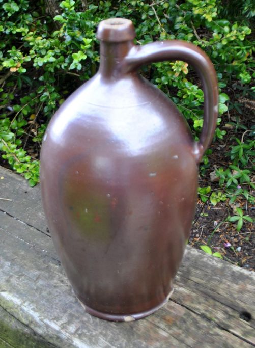 Lertøjs snapse dunk, 19. årh. Nordtyskland. Brunglaseret. Med hank. H.: 38 cm.
