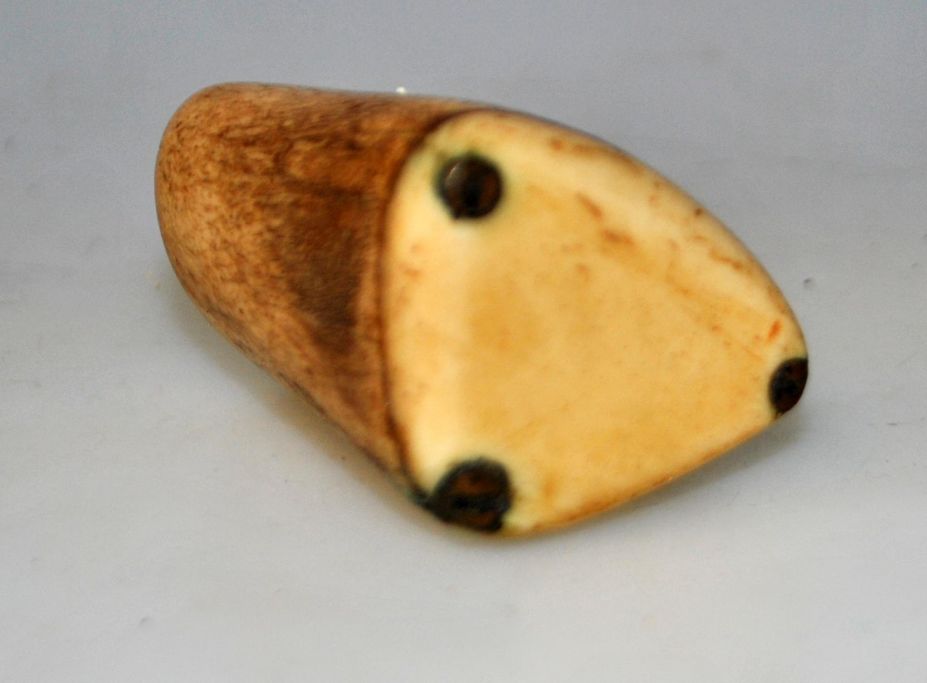 Lille Grønlandsk bæger af ben/knogle, 19./20. årh. Bund påskruet med tre små messingskruer. H: 4,5 cm.