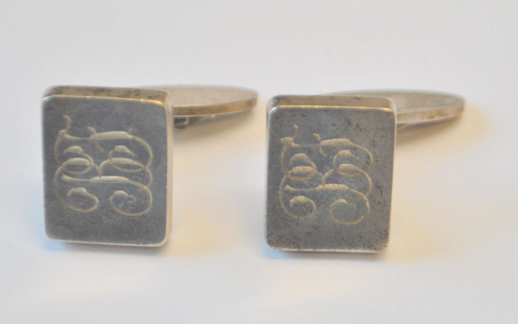 Par Georg Jensen manchet knapper i sterling sølv, 20. årh. København, Danmark. Design: 84. Stemplet. Med indgravering: BJ.