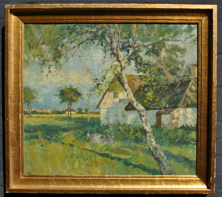 Dansk kunstner (20. årh.): Landskab med gårde.