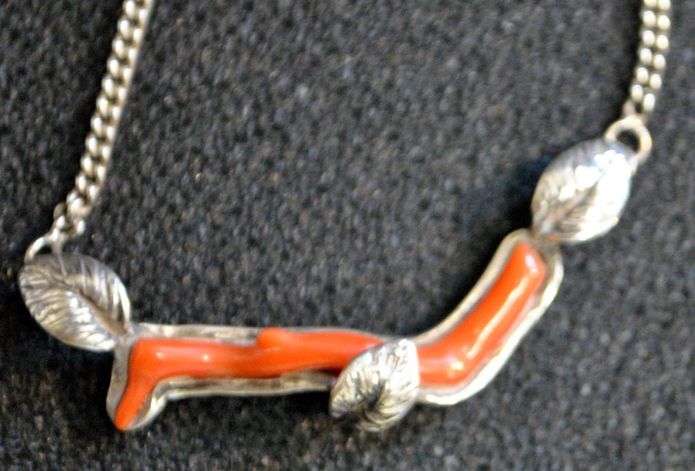 Sterling halskæde med koral, 20. årh. Stemplet: Stara 925. L: 43 cm.