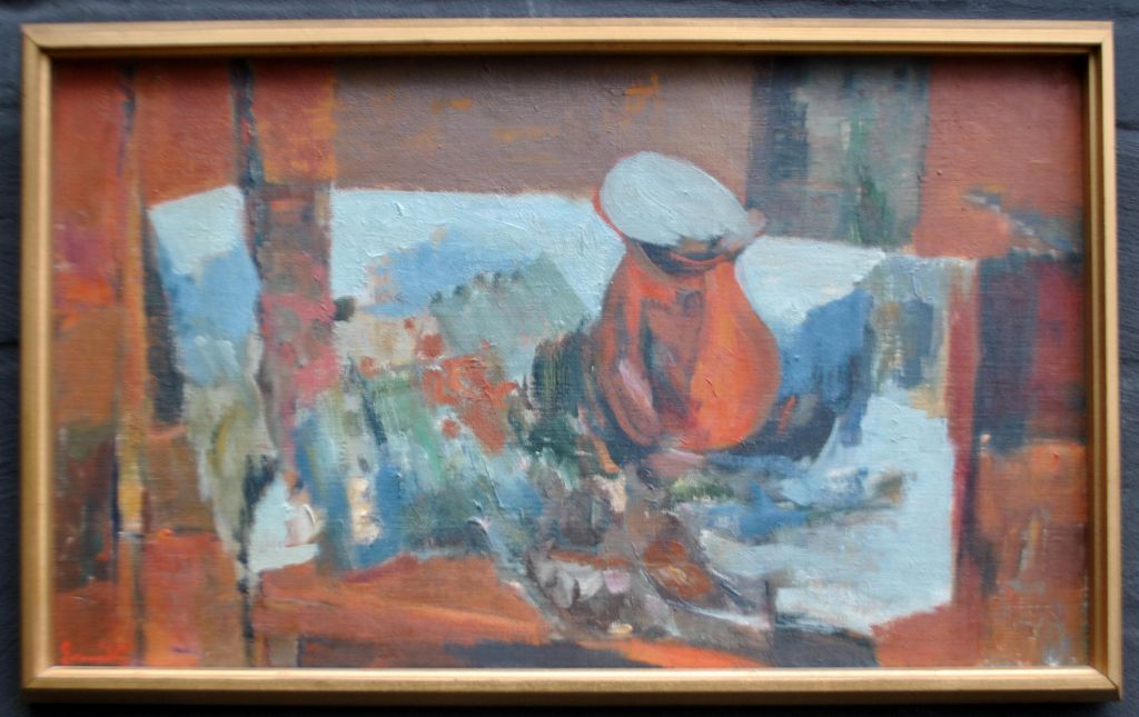Gregersen, Emil (1921 - 1993) Danmark: Opstilling med rød kande.