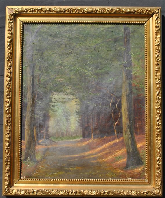 Dansk kunstner (19. årh.): Skov. Olie på lærred. Usigneret. H: 67 cm. B: 53 cm.