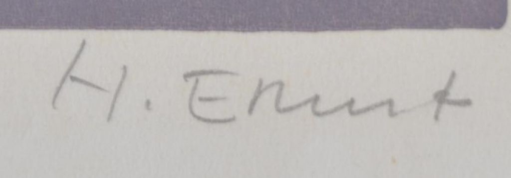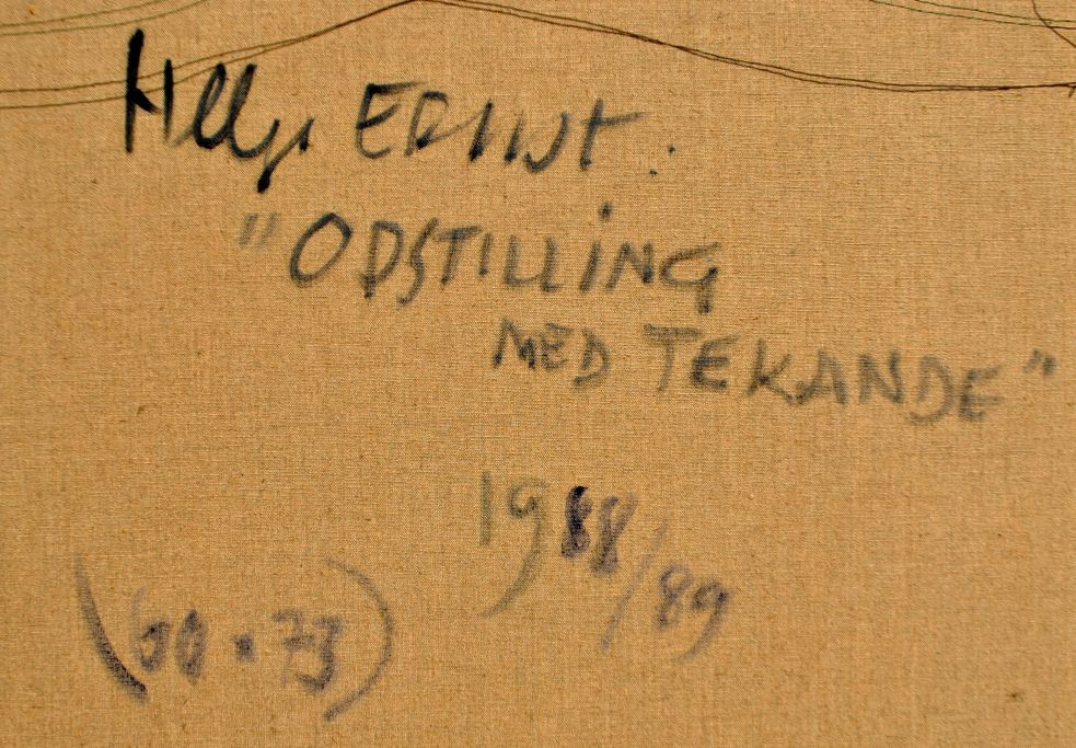 Hvis Helge Ernst malerier måler mere end 1 m. på den ene side, er de altid signeret på bagsiden.