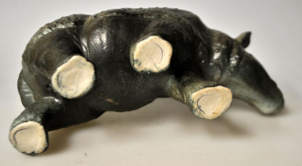 Carlsen, Poul Hauch (1921 - 2006) Danmark: Et næsehorn. Stentøj. Grønglaseret. Signeret: PHC Samsø. L.: 20 cm. H.: 11 cm.