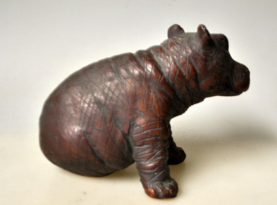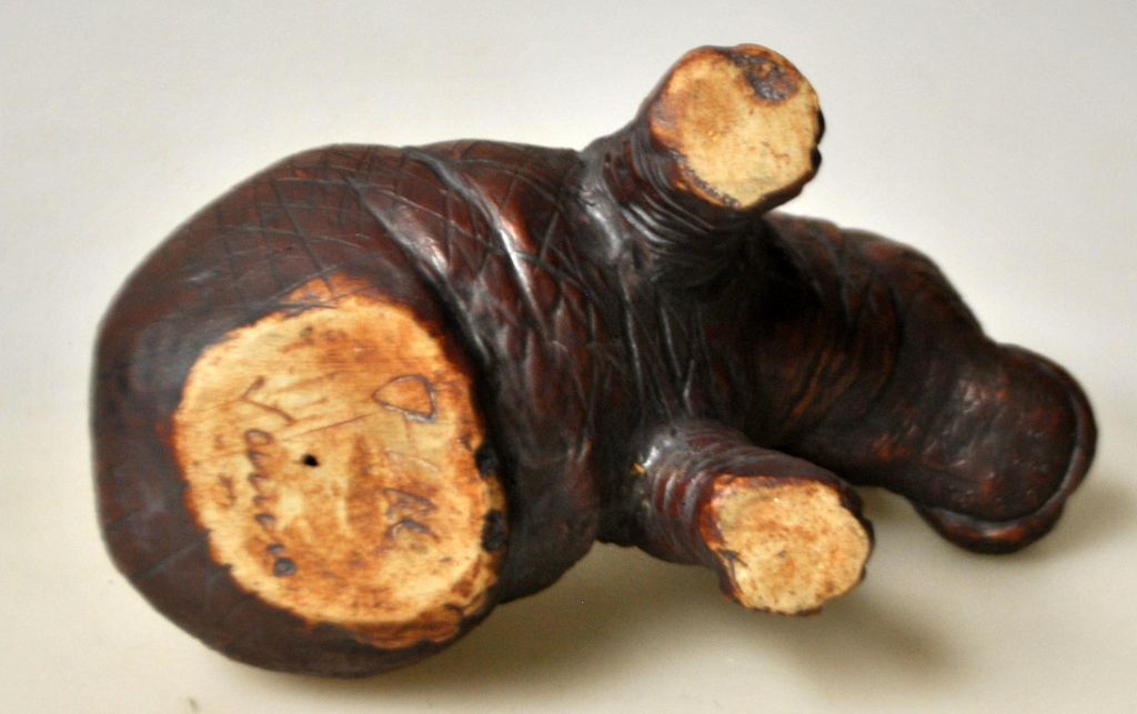 Carlsen, Poul Hauch (1921 - 2006) Danmark: En flodhest. Stentøj. Grønglaseret. Signeret: PHC Samsø. L.: 15 cm. H.: 10 cm.