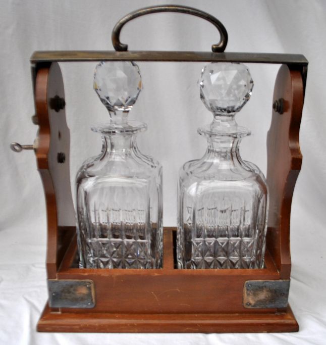 Engelsk tantalus med to krystal karafler, 19. årh.