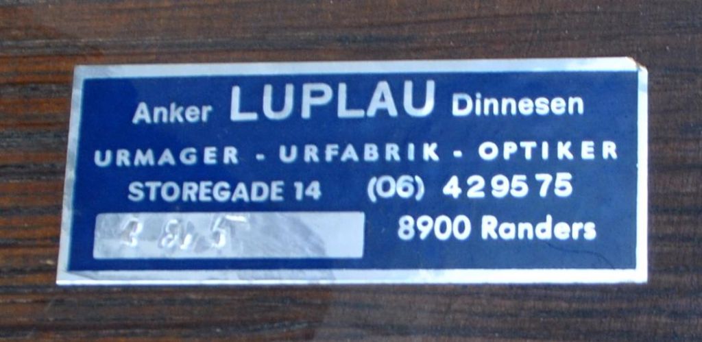 Dansk standur, 20. årh. Urfabrikant og urmager Anker Luplau Dinesen, Randers. No.: 325.
