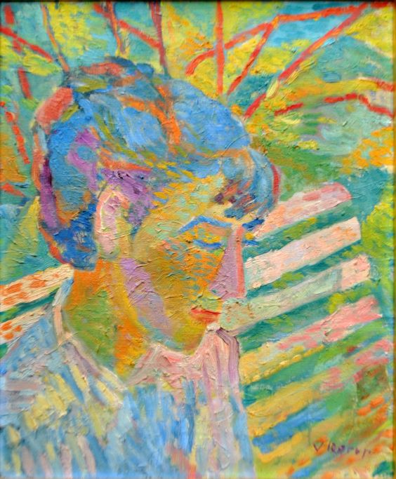 Rørup, Viggo Julius (1903 - 1971) Danmark: En kvinde på en bænk. Olie på lærred. Signeret. 38 x 30 cm. Indrammet: 49 x 41 cm.