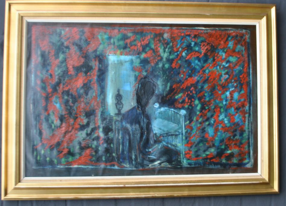 Givet som gave til kunsthandler Hans Erik Nielsen, Aarhus. Antagelig et værk af Kaj Christensen.
