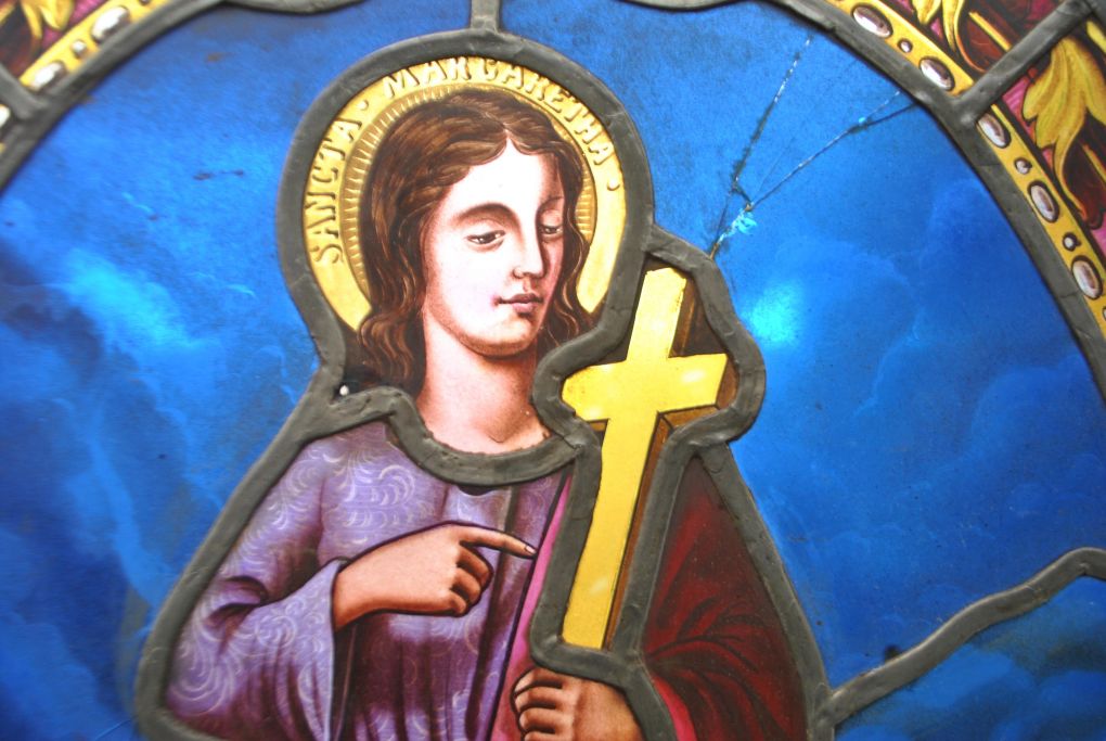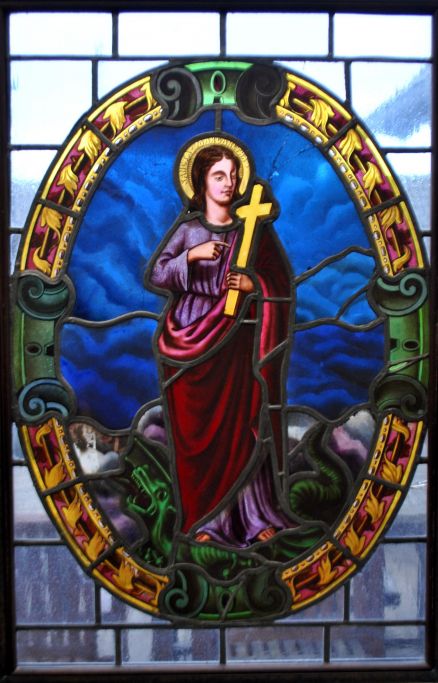 Katolsk kirkemosaik, glasmaleri, 19. årh. Motiv med Santa Margherita.
