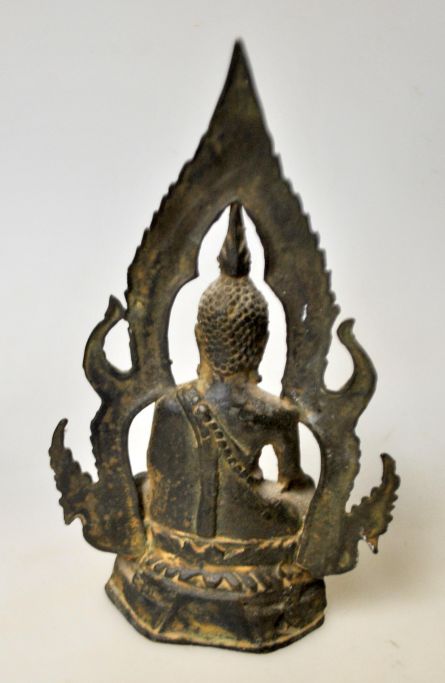 Siddende Buddha, 18/19. årh. Bronze. Cire Perdue. H.: 17 cm.