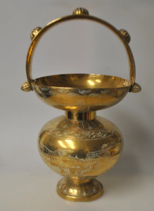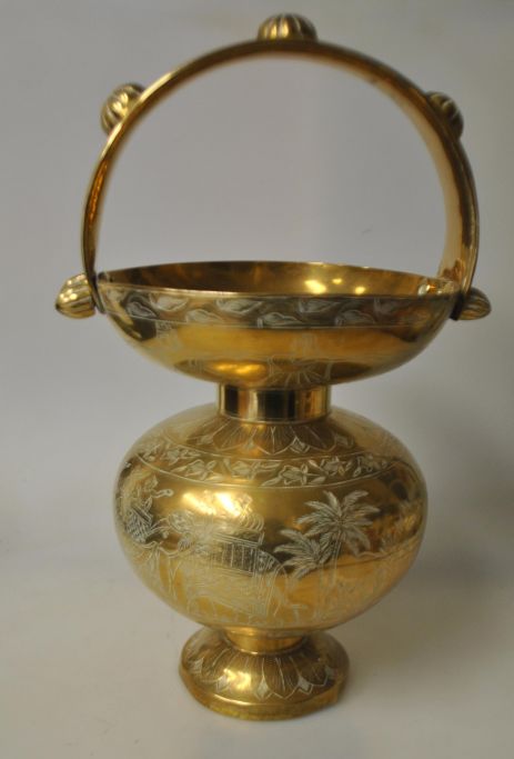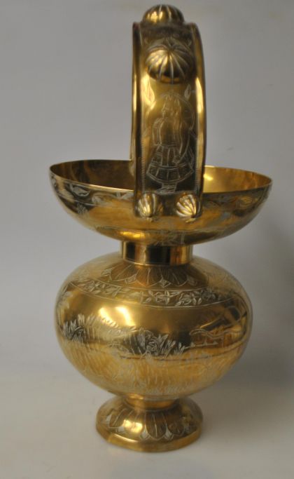 Stor indisk messing vase med hank, ca. 1950.