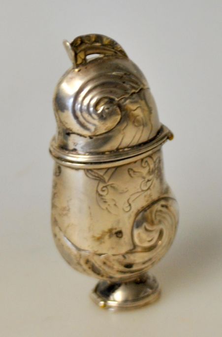 Andreas (Jesper) Kanneworff (1772 - 1854) Ringkøbing, Danmark: Hovedvandsæg. Rokoko. Indvendig lueforgyldt. Stemplet i balsamgemmet. Højde.: 8 cm.