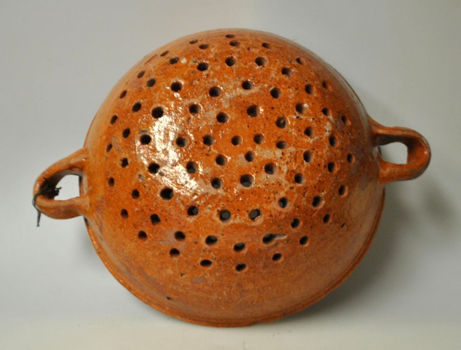Dørslag i glaseret lertøj, 19. årh. Danmark.