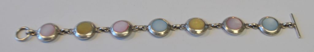 Armsmykke i sterlingsølv med perlemor, 20. årh. Stemplet. L.: 18,5 cm.
