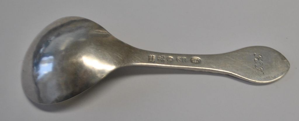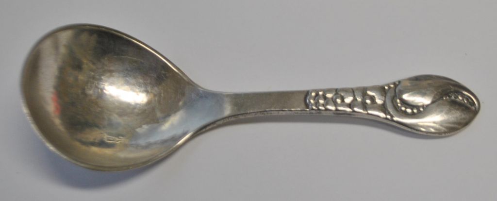 Nielsen, Evald (1879 - 1958) Danmark: Hamret sølvske, 1926. No. 12. Stemplet. 830 s. L.: 10,5 cm.