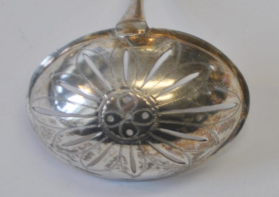 Niels Christian Lindback (ca. 1767 - 1797) København, Danmark: Strøske i sølv. Stemplet mestermærke, bymærke m.v.. L.: 18 cm. Med dekorationer og initialer.