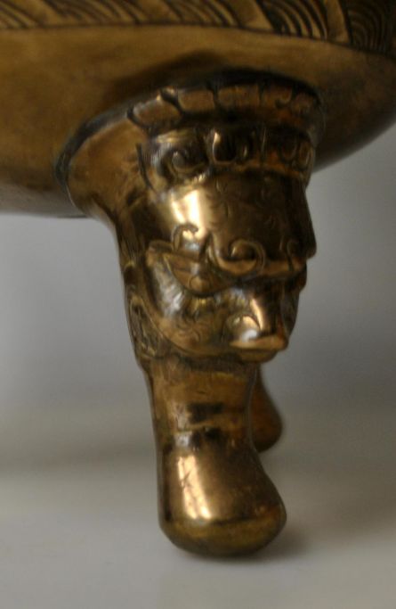 Kinesisk røgelseskrukke i bronze på tre ben, 19. årh.