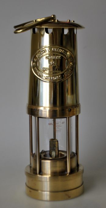 Cambrian minelampe i messing, E. Thomas & Williams Ltd, 20. årh. Wales