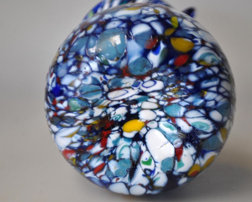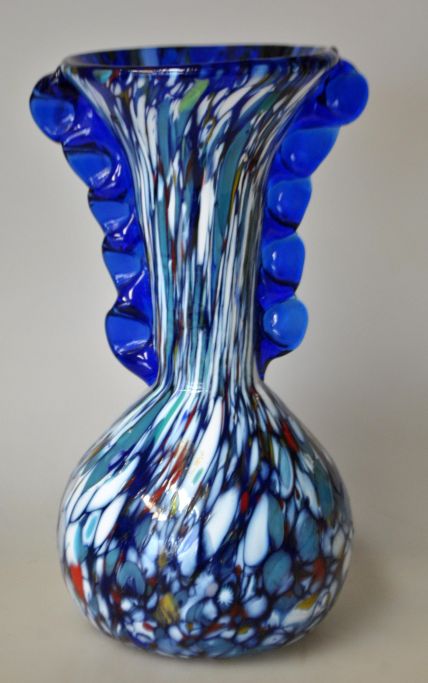 Murano Glasvase, 20. årh. Italien. Flerfarvet glas. Med to hanke. H: 19 cm. Med original etiket fra Murano.