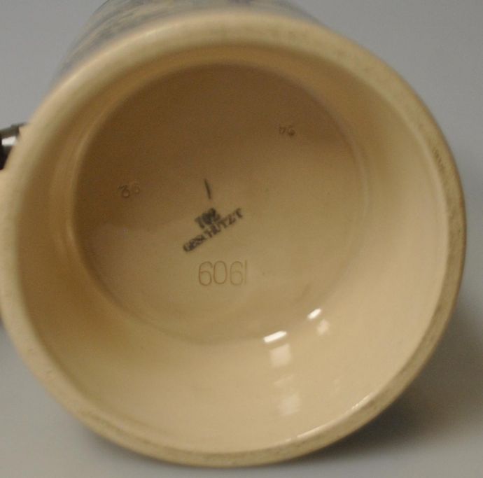 Tysk fajance krus med tinlåg 1909.