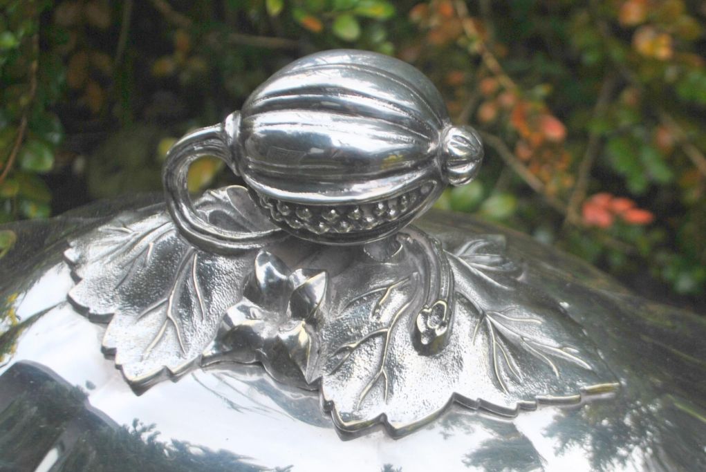 Forsølvet kødkuppel/madklokke, 19. årh. England. Stemplet: Gray & Dailey. Med håndtag. H.: 25 cm. L: 41,5 cm. B: 34 cm.