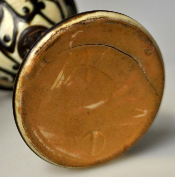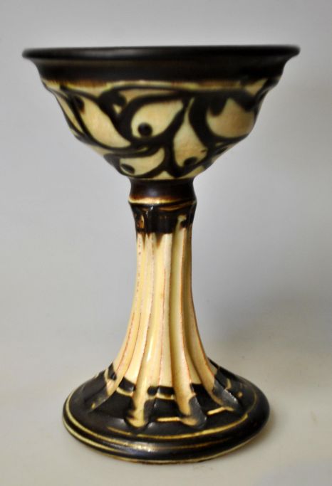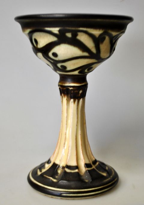 Herman A. Kähler: Kalk. Rødler med brune og lyse glasurer. Hornmalet arbejde. Med kanneleret stilk. Signeret.: HAK Danmark. Dia.: 11,8 cm. H.: 17,3 cm.