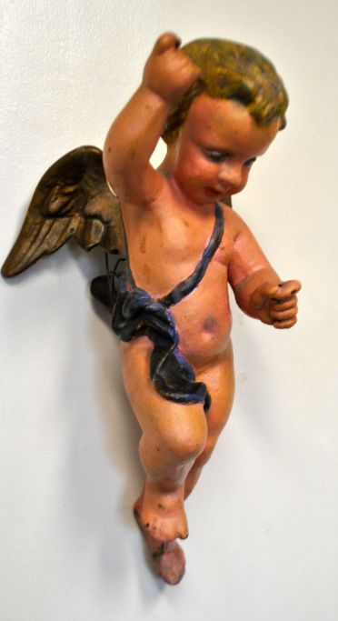 Barok engel, 18. årh. I støbt bemalet tin. Med vinger. H.: 28 cm.