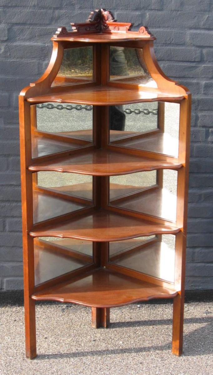 Hjørnemøbel i mahogni, Danmark, 19. årh. Med spejle. Med skæringer i toppen. H.: 133 cm. B.: 62 cm. D.: 44 cm.