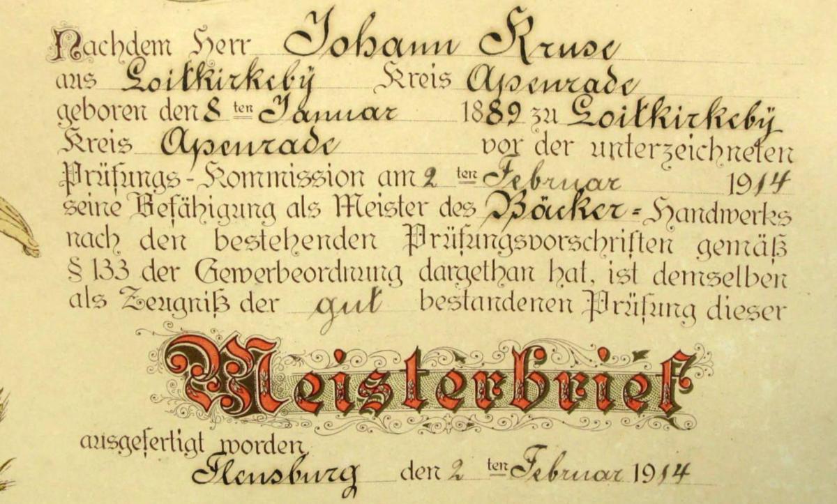 Bager mesterbrev, Løjt Kirkeby, 1914
