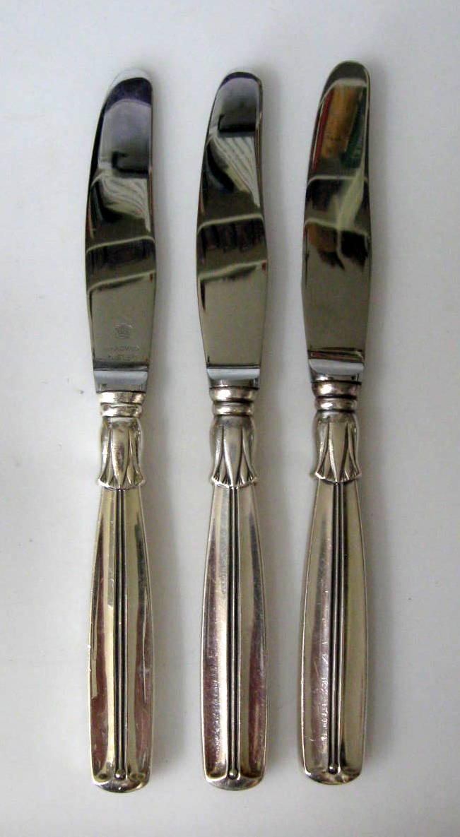 Knive. L.: 22 cm. Med Raadvad knivblad. Stemplet 830 s. Pt. Pt.: 25 stk. på lager. Pris pr. stk: 350,- kr.