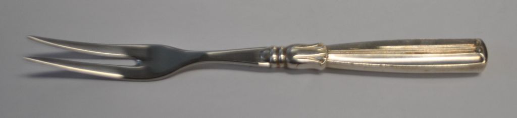 Pålægs gaffel med stål. L.: 14,5 cm. 1 stk. på lager. Pris.: 250,- kr. SOLGT!