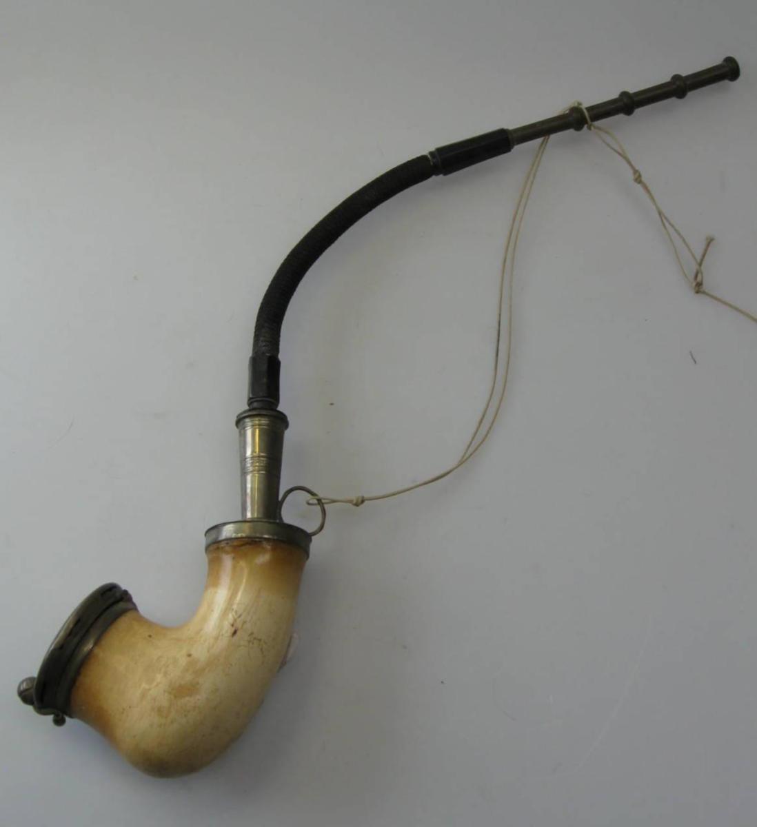 Merskumspibe med låg i sølv, 19. årh. Danmark. Låget er stemplet. L.: 47 cm.